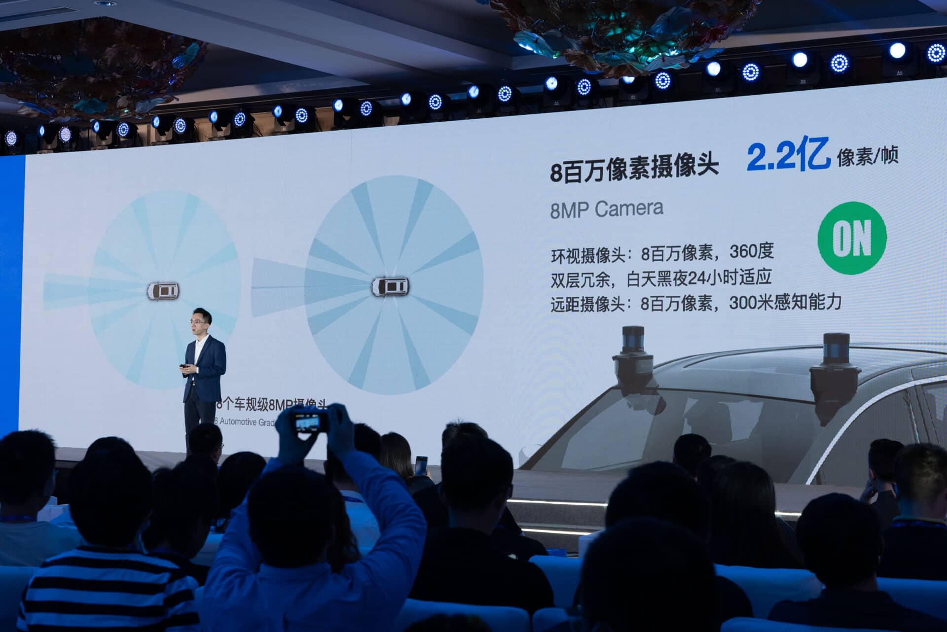 ●28 个 8 百万像素的车规级摄像头,每帧像素总和超越 2.2 亿